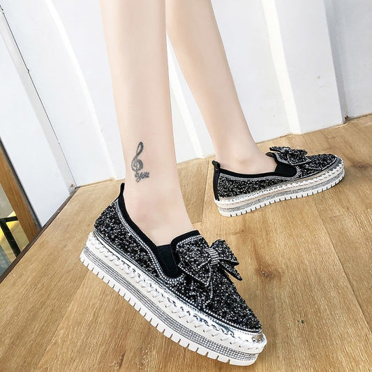 Shining Rhinestone Slip-on Thick Botton Casual Ladies Crystal Shoes