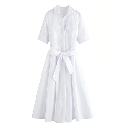 Short Sleeve Casual Denim Shirt Dress-Buy two and get free shipping!
