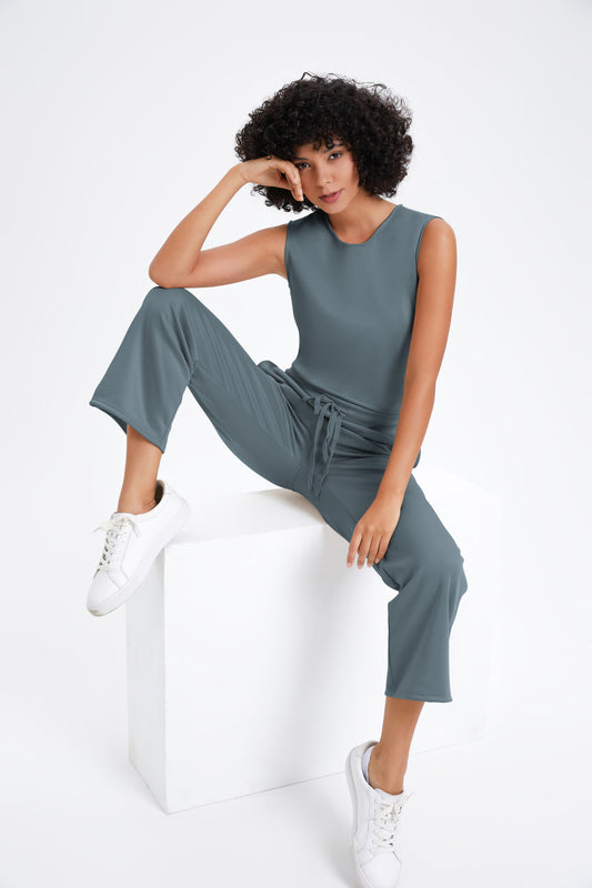 Slim casual women's sleeveless solid color v-neck trousers jumpsuit - Buy two and get free shipping!