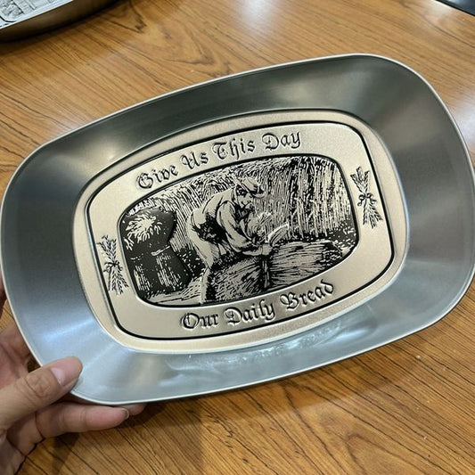 Vintage “Give Us This Day Our Daily Bread” Metal Serving Tray, Bread Platter, Decorative Platter, Kitchen Decor
