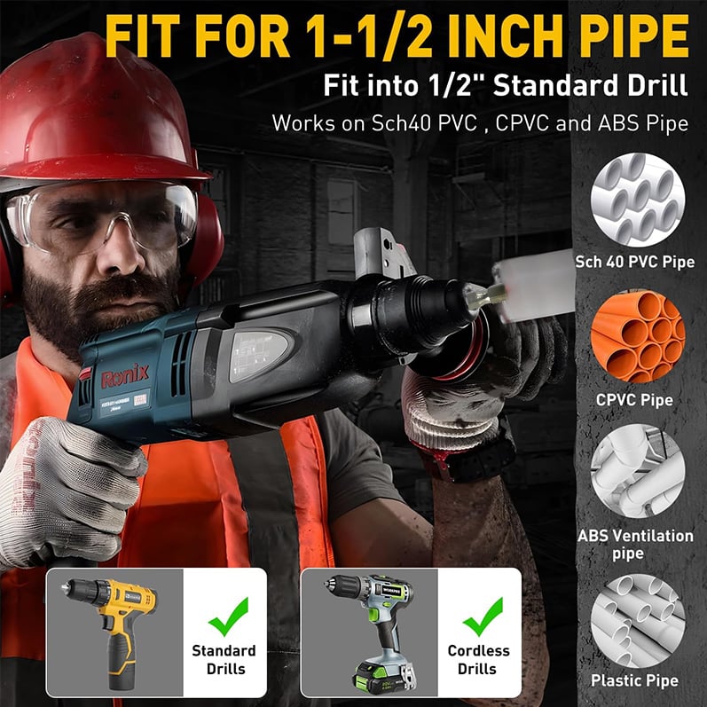 ADVANTAGES OF POWERFUL PIPE REAMER: Pipe Reaming Drill Bits help to install fittings in a fraction of the time, reducing the time spent on plumbing repair projects.