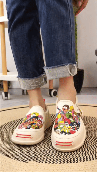 Thick-soled Slip-on Graffiti Canvas Casual Shoes