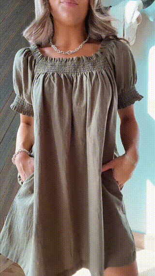 Cute loose dress featured statement puff sleeves, pleated detailing and convenient side pockets. Square neckline or off-shoulder, easily switch your style. It will be a new favorite in your closet!